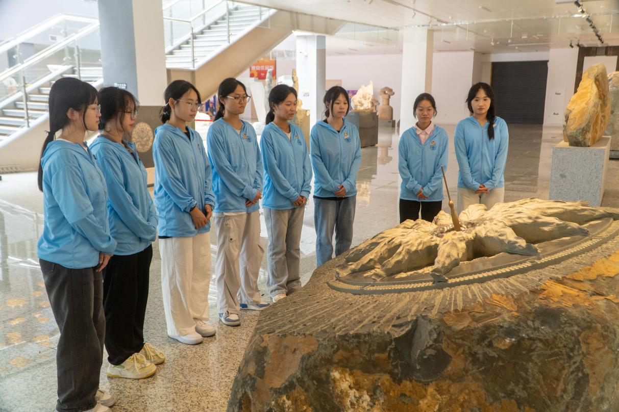 離開工作室,隊伍前往 “世界石雕之都” 展示中心與雕藝博物館。展示中心以石材為載體,展現(xiàn)山海特色與千年雕藝精髓;博物館內(nèi)千余件展品,串聯(lián)起從傳統(tǒng)影雕到現(xiàn)代抽象石雕的技藝演變歷程。成員們在參觀中,見證傳統(tǒng)紋樣與當代設計的融合,感受古老工具與現(xiàn)代機械在石雕創(chuàng)作中的協(xié)作,深刻理解文化傳承與創(chuàng)新的內(nèi)在邏輯,認識到傳統(tǒng)匠心技藝對鄉(xiāng)村文化振興的重要意義。