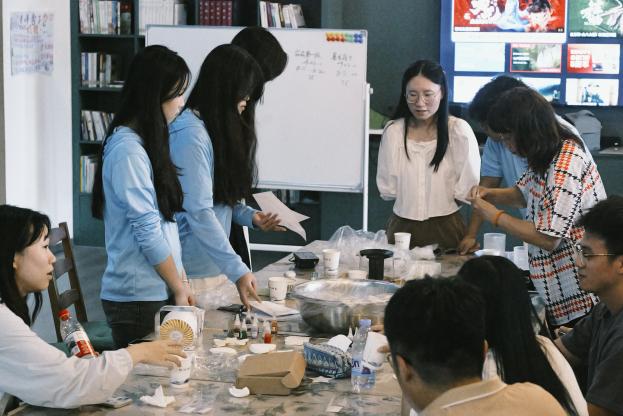 短暫互動(dòng)后,踐行團(tuán)成員協(xié)助臺(tái)灣大學(xué)生完成非遺漆扇制作?;顒?dòng)中,掌握漆藝技巧的踐行團(tuán)成員從扇面構(gòu)圖到漆料運(yùn)用,手把手指導(dǎo)臺(tái)灣同伴完成調(diào)色、繪制等工序。雙方在創(chuàng)作過程中交流兩岸漆藝發(fā)展情況,互鑒創(chuàng)作靈感,原本素白的扇面逐漸呈現(xiàn)出獨(dú)具特色的紋樣。這些由兩岸青年共同完成的漆扇作品,既承載著傳統(tǒng)工藝的匠心,又融入了青春友情的溫度。此次活動(dòng)通過非遺手作這一生動(dòng)形式,讓兩岸青年在協(xié)作中深化文化認(rèn)同,為基層社會(huì)服務(wù)增添了動(dòng)人的文化色彩。