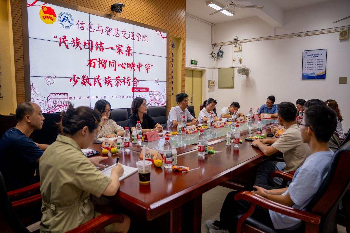 為深入貫徹落實(shí)黨的民族政策,大力弘揚(yáng)“各民族像石榴籽一樣緊緊抱在一起”的民族團(tuán)結(jié)精神,推動(dòng)多民族交流融入日常教學(xué)與校園生活,信息與智慧交通學(xué)院于9月24日在福道園自強(qiáng)樓2-1會(huì)議室舉辦“民族團(tuán)結(jié)一家親,石榴同心映中華”少數(shù)民族茶話會(huì)。