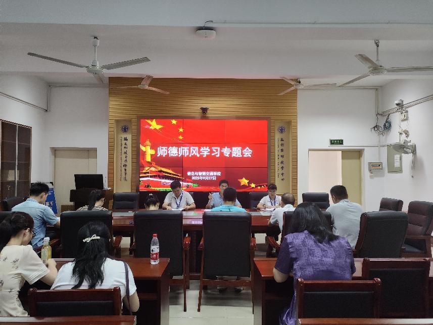 9月27日下午,信息與智慧交通學(xué)院開展了師德師風(fēng)建設(shè)工作專題會(huì),學(xué)習(xí)了《習(xí)近平致信全國優(yōu)秀教師代表 向全國廣大教師和教育工作者致以節(jié)日問候和誠摯祝福》、《教育部公開曝光第十三批7起違反教師職業(yè)行為十項(xiàng)準(zhǔn)則典型案例》。會(huì)議由信息與智慧交通學(xué)院黨總支書記許友孝主持。