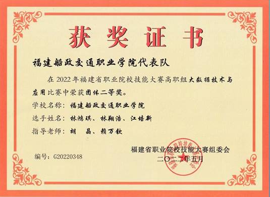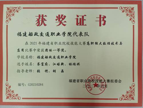 人才培養(yǎng)依托行業(yè)領(lǐng)軍企業(yè),結(jié)合智慧交通大數(shù)據(jù)、智慧海洋大數(shù)據(jù)等產(chǎn)業(yè)發(fā)展方向,注重“產(chǎn)教融合、課證融通、以賽促學(xué)”的教育理念,學(xué)生多次在世界職業(yè)院校技能大賽、全省職業(yè)院校技能競(jìng)賽、金磚國(guó)家技能發(fā)展與技術(shù)創(chuàng)新大賽、華為ICT大賽等專業(yè)相關(guān)賽項(xiàng)中榮獲一等獎(jiǎng)、二等獎(jiǎng)的好成績(jī)。