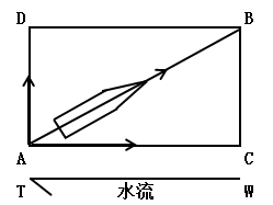 在圖中,有水流WT,船AB方向走,分出縱力AC與水流WT抵消,