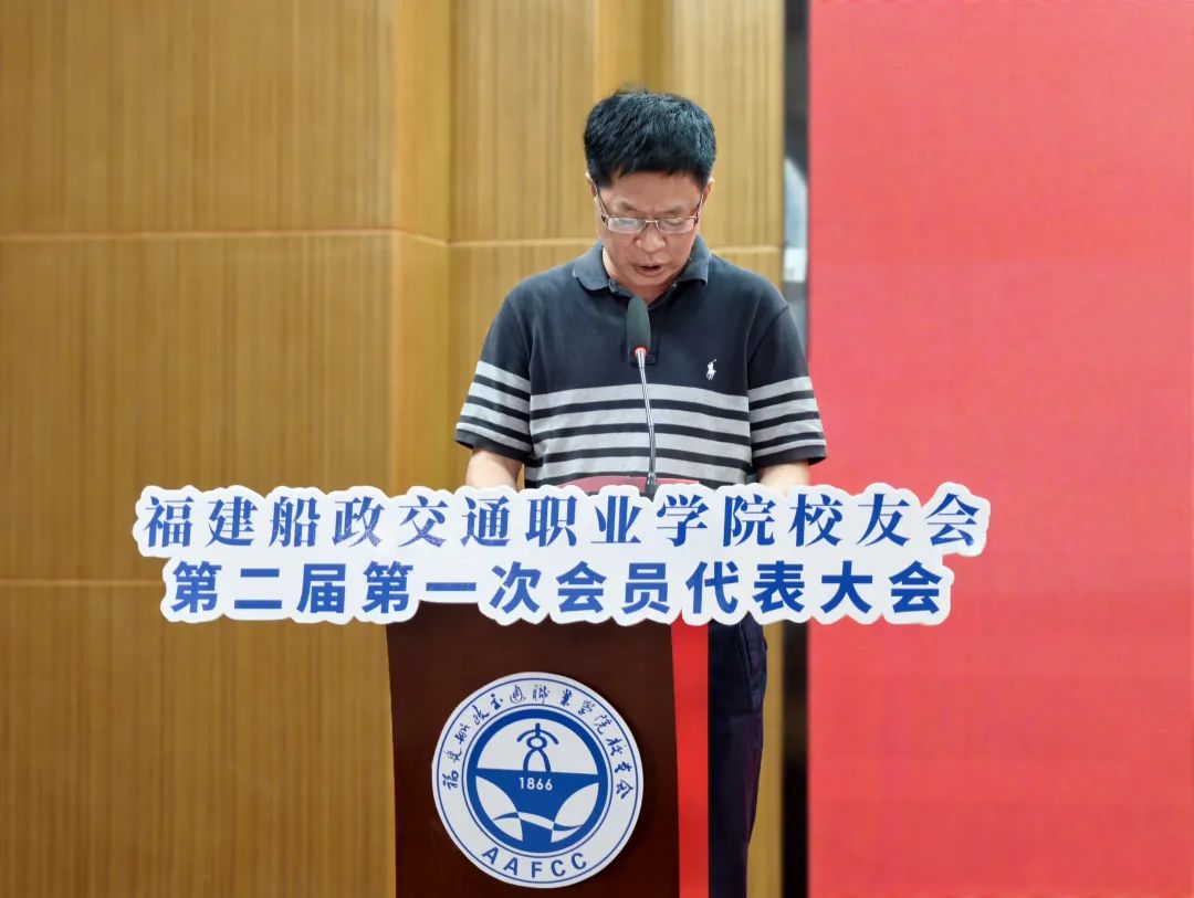 福建船政交通職業(yè)學院第一屆校友會副會長、福建省船政文化交流協會會長林志升宣讀了主管單位關于同意換屆的批復文件;第二屆第一次會員代表大會籌備組組長俞素平向大會報告籌備工作情況。