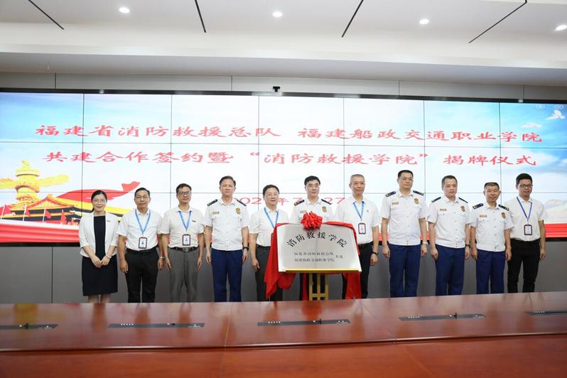 7月27日上午,我院與福建省消防救援總隊(duì)共建合作簽約暨“消防救援學(xué)院”揭牌儀式在學(xué)院第一會(huì)議室舉行。福建省消防救援總隊(duì)黨委書記、政治委員賴世雄,總隊(duì)黨委委員、副總隊(duì)長(zhǎng)陳立民,總隊(duì)黨委委員、政治部主任陳培志,福建船政交通職業(yè)學(xué)院黨委書記張海明,黨委副書記、院長(zhǎng)陳錦輝,黨委副書記陳宜大,黨委委員、副院長(zhǎng)張祖柱出席儀式。學(xué)院黨委委員、副院長(zhǎng)陳艷紅主持儀式,福建消防救援總隊(duì)政治部各處室干部和訓(xùn)保支隊(duì)指戰(zhàn)員代表,學(xué)院相關(guān)職能部門、二級(jí)學(xué)院相關(guān)負(fù)責(zé)人及安全與環(huán)境學(xué)院教師代表參加。