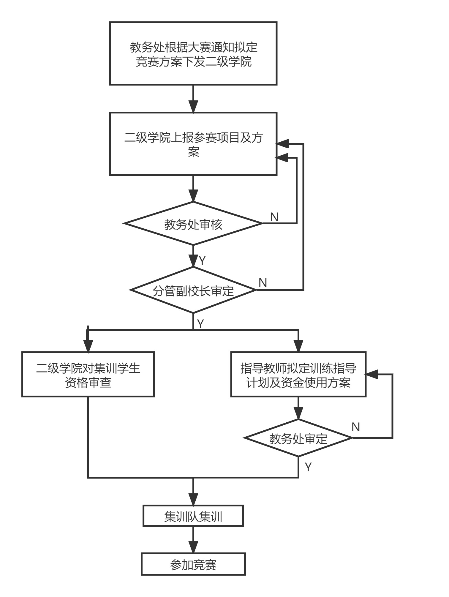 ⑥二級(jí)學(xué)院負(fù)責(zé)本部門比賽項(xiàng)目訓(xùn)練情況的日常監(jiān)督檢查,教務(wù)處對(duì)學(xué)生訓(xùn)練情況不定期組織監(jiān)督檢查。