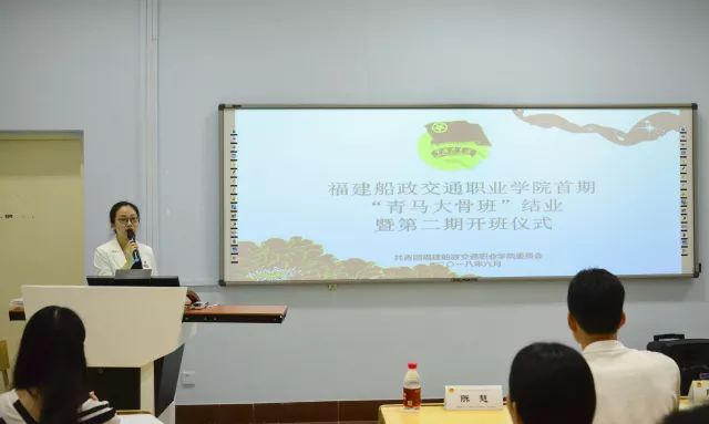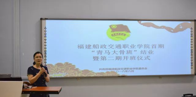 陳艷紅副院長在開班儀式致辭,她說:”青馬大骨班“的學員,不僅是團學干部,更是學院優(yōu)秀學子的典型代表。"青馬工程"的首要任務,就是培養(yǎng)具有堅定馬克思主義理想信念的青年學生,充分發(fā)揮團員青年在學院建設發(fā)展中的生力軍和突擊隊作用。她希望第二期青馬大骨班的同學向首期優(yōu)秀學員學習,在繼承中創(chuàng)新,并對第二期青馬大骨班學員提出了三點要求: