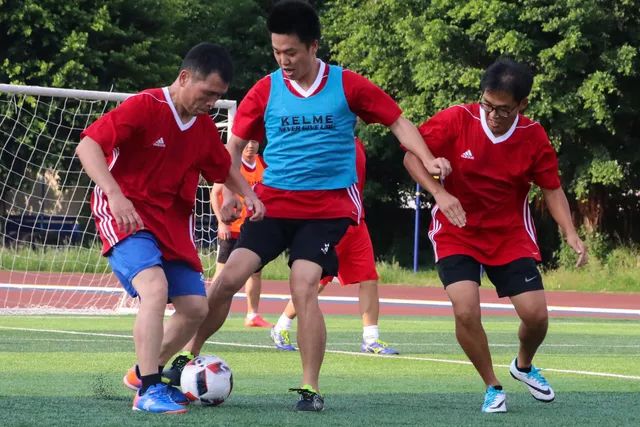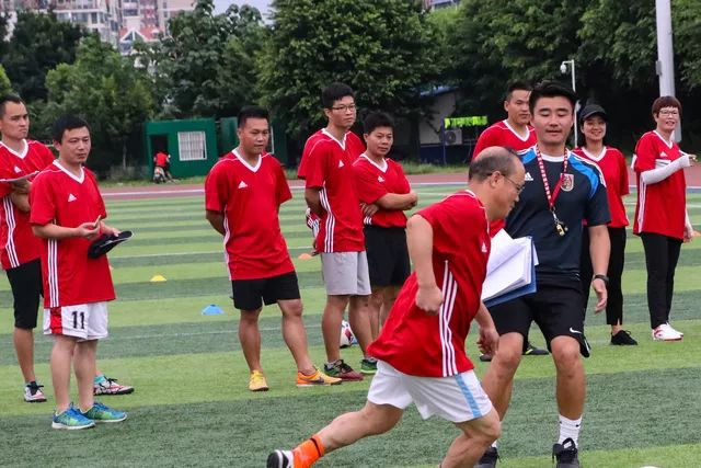 在綠茵場上我們看到了一群真正熱愛足球的師生們在烈日高陽下?lián)]灑汗水,奔跑吧,足球骨干教師們!