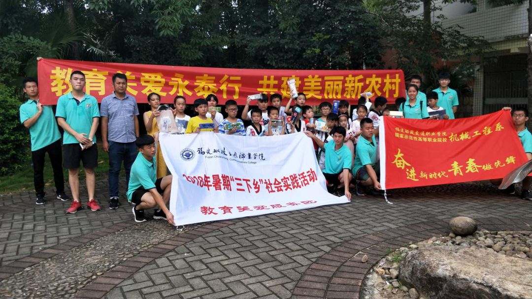 七月中旬,機(jī)械工程系師生組建了一支10人的服務(wù)團(tuán)隊(duì)奔赴國家扶貧開發(fā)重點(diǎn)縣——福建永泰縣,圍繞建設(shè)美麗鄉(xiāng)村、重溫紅色記憶、探尋民俗古風(fēng)等主題內(nèi)容開展了教育關(guān)愛、紅色之旅、美麗中國等“三下鄉(xiāng)”系列活動(dòng),融入廣大基層勞動(dòng)人民與他們共享生活之趣,感受勞動(dòng)之樂,體會(huì)青春之美。