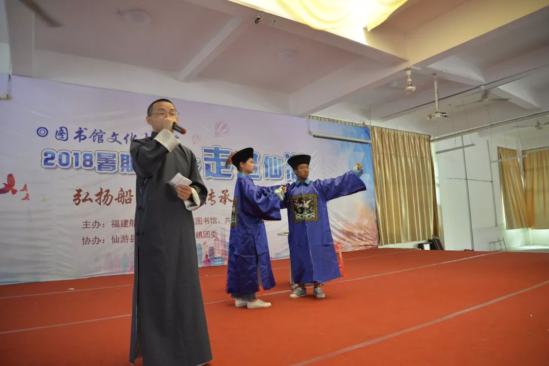 圖書館學生館員聯(lián)合會干部表演了音詩畫《湘江夜話》、詩誦讀《百年船政 再創(chuàng)輝煌》等節(jié)目,并通過移動小型校史館展覽等,向參會的學生傳播船政的歷史和文化,倡導一絲不茍、精益求精的工匠精神。圖書館黨員干部與仙游華僑中學貧困留守兒童結(jié)對幫扶,并贈送生活用品。