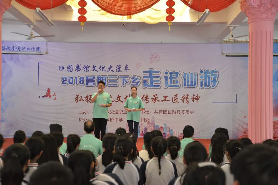 7月6日下午,福建船政交通職業(yè)學院圖書館“教育關(guān)愛服務團”2018年暑期“三下鄉(xiāng)”實踐活動,在莆田仙游華僑中學正式拉開了帷幕。華僑中學200余名學生,及當?shù)亓羰貎和煌瑓⒓印?/p>