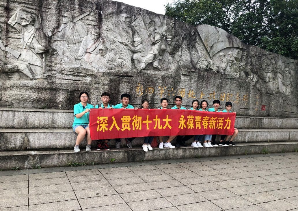 實踐團同張老先生一起走訪了棠口村瞻仰莊嚴雄偉的“新四軍六團北上抗日紀念碑”。紀念碑采用花崗巖石材制作,由廣場、基座、碑體、英烈魂歸故里安息處四部分組成,象征著新四軍中“四”的數(shù)字?;腥壟_階,象征著“三支隊”。上面的壁畫彰顯了中國紅軍表現(xiàn)出來的堅定共產(chǎn)主義理想、革命必勝的信念、艱苦奮斗的精神和一往無前、不怕犧牲的英雄氣概,揭示了“不忘初心,走好新的長征路”的時代內(nèi)涵。同時也告訴我們作為新一代的青年,要不斷的學(xué)習(xí)與進取。在新的長征路上,我們要立足世情國情社情,統(tǒng)籌大局。
