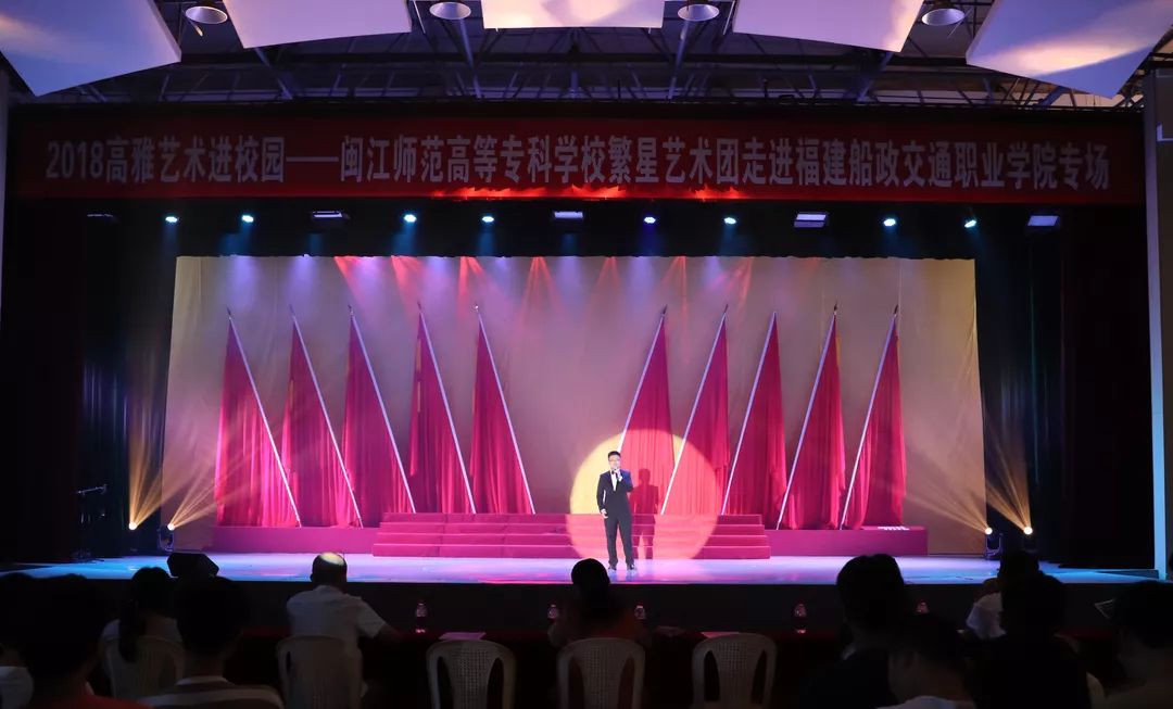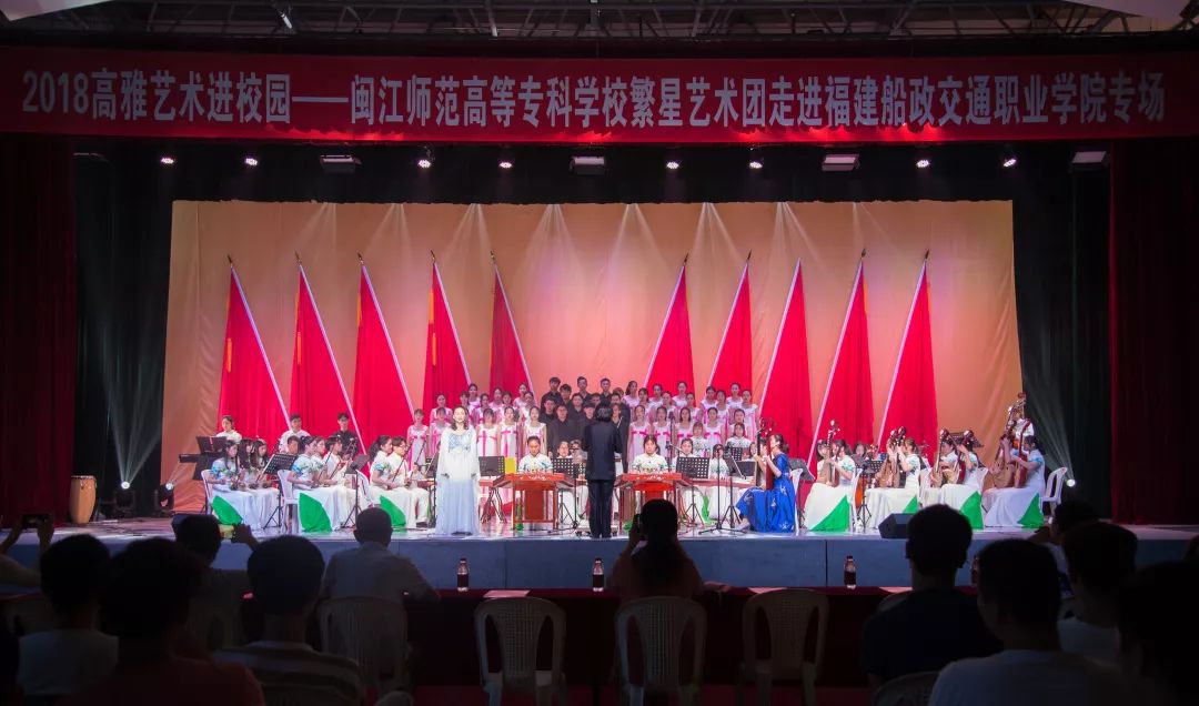 9月26日14:30,“閩江師范高等??茖W(xué)校繁星藝術(shù)團走進福建船政交通職業(yè)學(xué)院專場”在我校文體中心舉行。