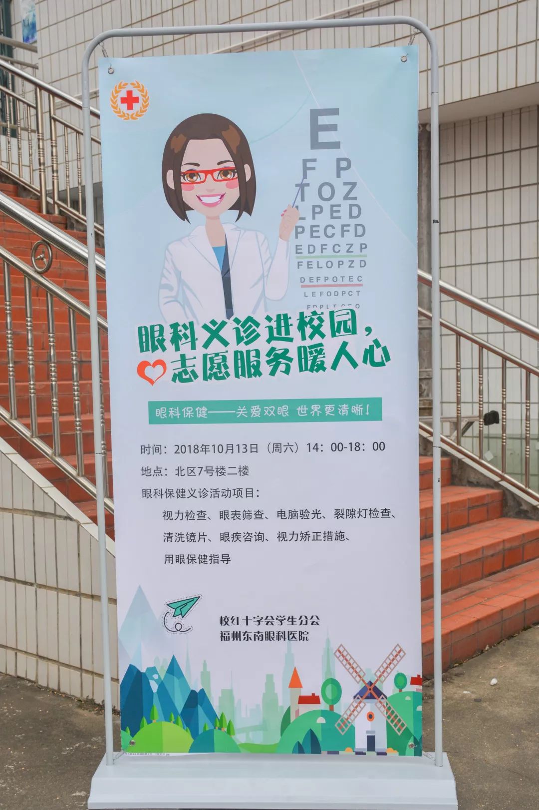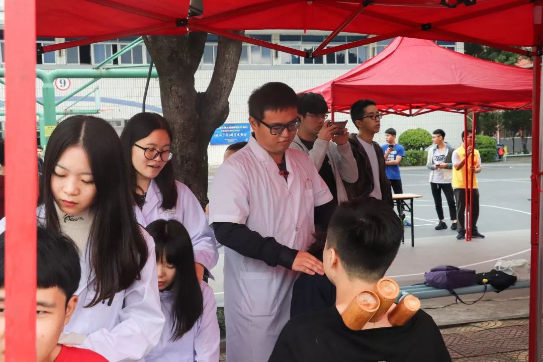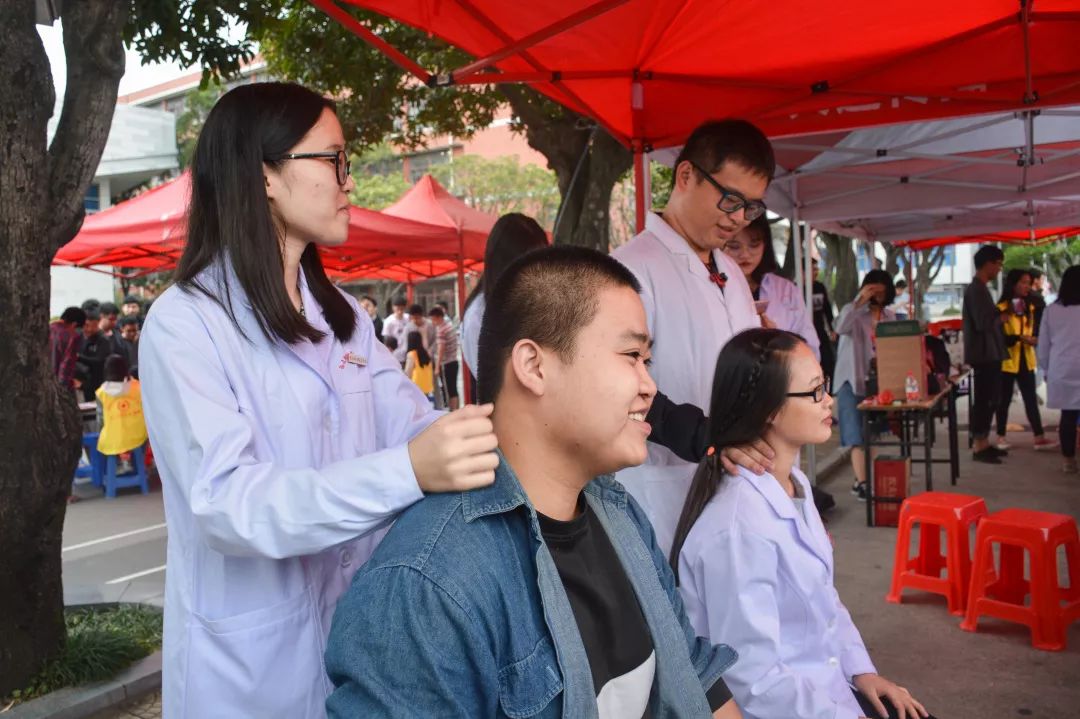 本次義診不僅有量血壓、測(cè)血型、刮痧、拔罐四項(xiàng)傳統(tǒng)義診項(xiàng)目,還另外開設(shè)了眼科保健,為同學(xué)們提供視力檢查、眼表篩查、電腦驗(yàn)光、裂隙燈檢查、清洗鏡片、眼疾咨詢、視力矯正措施、用眼保健指導(dǎo)等幫助。