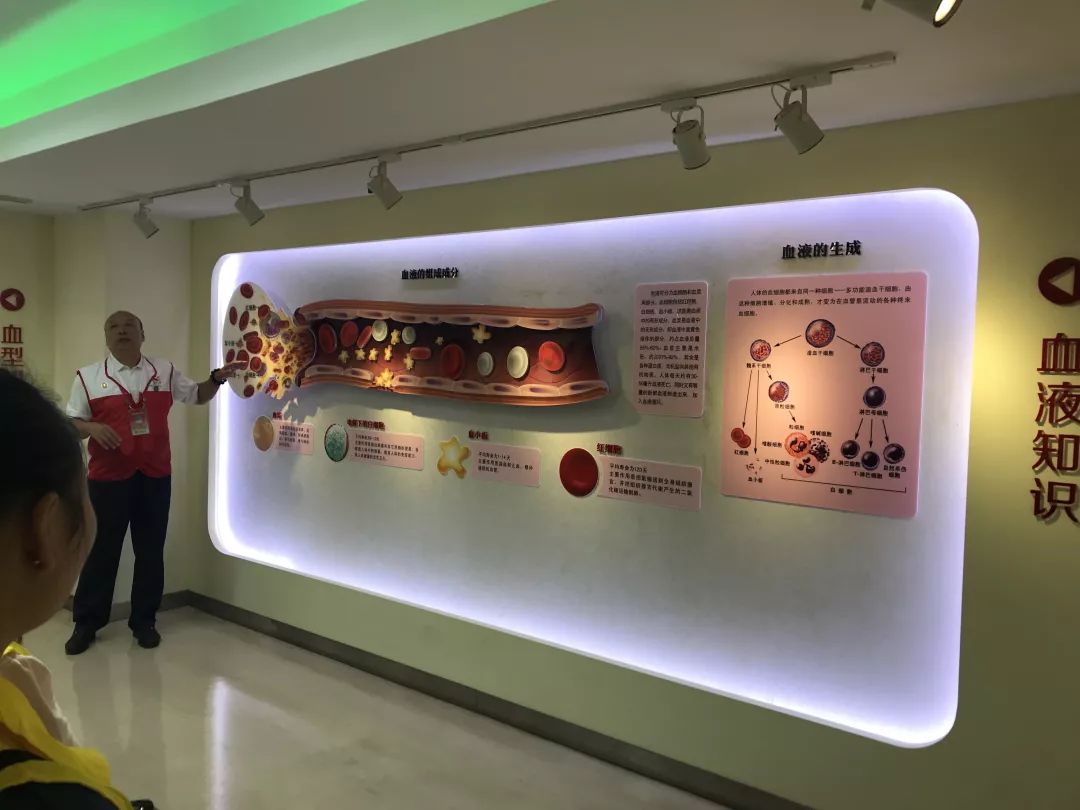 在程曉曉醫(yī)生的帶領(lǐng)下我們一共參觀了4個(gè)展廳。為我們講解血液的生成,血液的組成,無(wú)償獻(xiàn)血的條件和注意事項(xiàng),無(wú)償獻(xiàn)血的歷史,血液安全問(wèn)題。