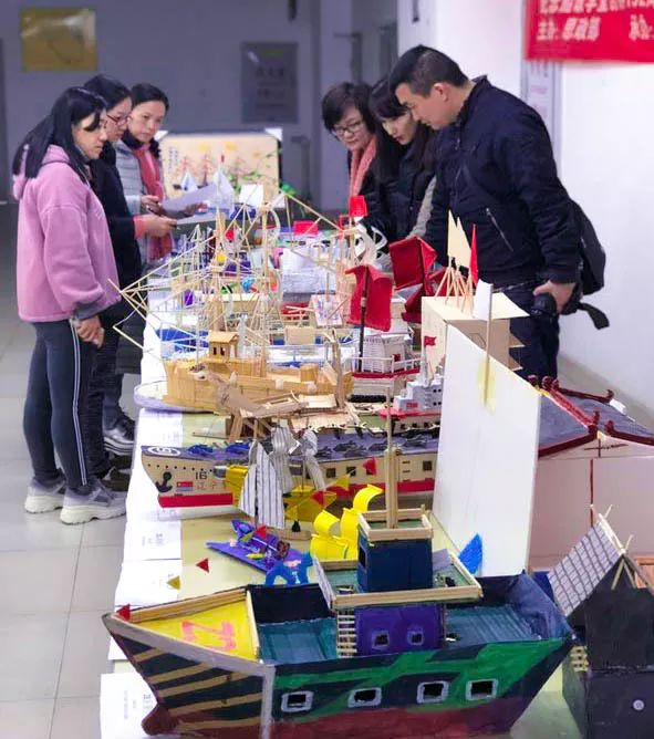 現(xiàn)場展示了來自10個系部的47件參賽作品,吸引了眾多同學(xué)駐足欣賞。評委老師對參賽作品進行認真評選。最終,來自航海技術(shù)工程系李泳波和沈燕鴻同學(xué)的作品——“一部船政史,半部中國近代史”憑借精湛的工藝、貼切活動的主題和完美的視覺效果斬獲一等獎。