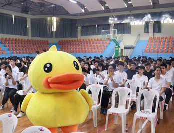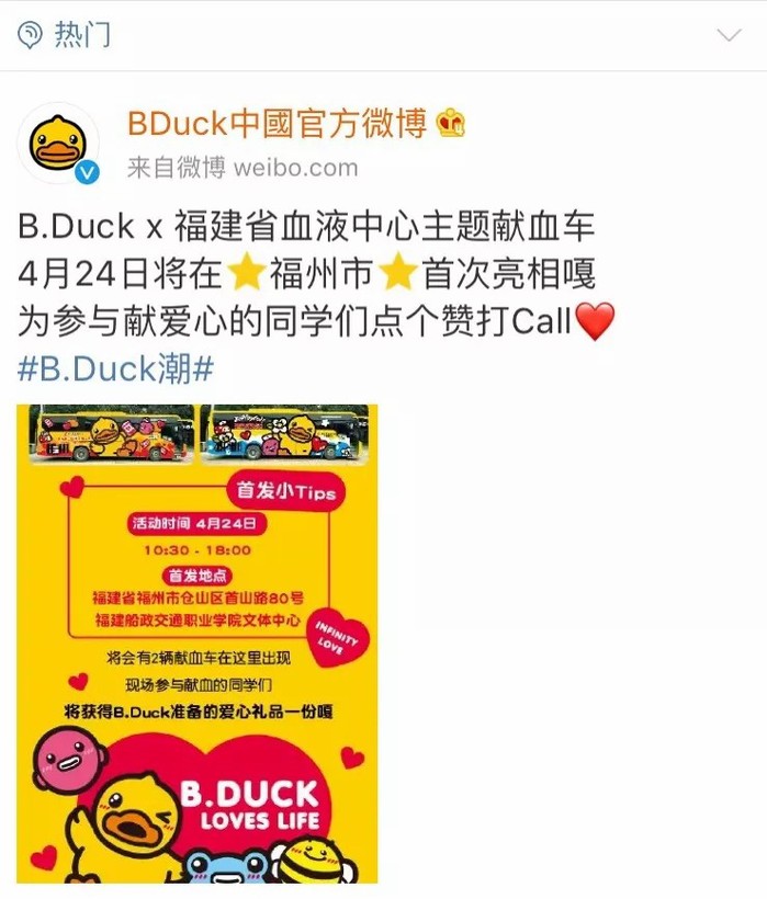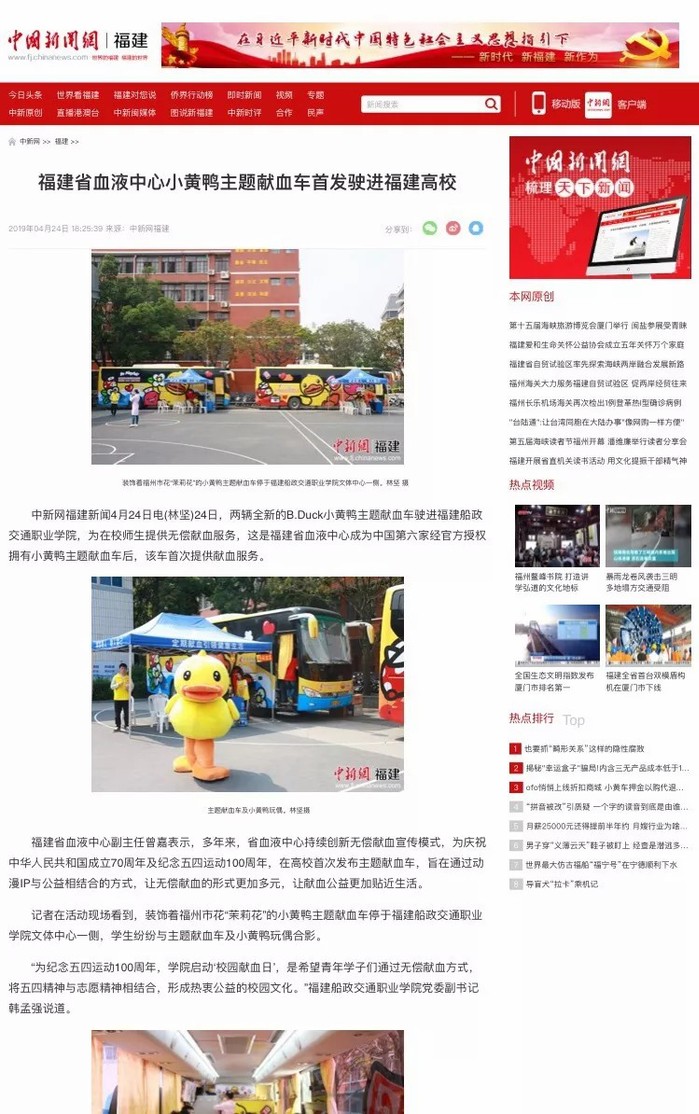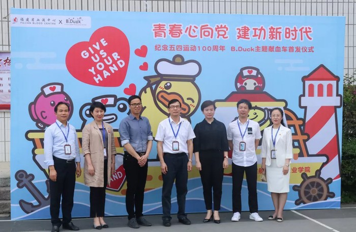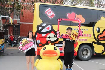 4月24日,兩輛全新布置的B.Duck小黃鴨主題獻(xiàn)血車開進(jìn)我校,開啟“青春心向黨·建功新時(shí)代”愛心獻(xiàn)血活動(dòng)。