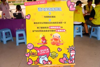 獻(xiàn)血區(qū)旁還設(shè)置了抽獎(jiǎng)環(huán)節(jié),設(shè)有“船長獎(jiǎng)”和“舵手獎(jiǎng)”等若干獎(jiǎng)項(xiàng),參加獻(xiàn)血的師生可以參加抽獎(jiǎng),中獎(jiǎng)?wù)攉@得了正版小黃鴨宣傳品。