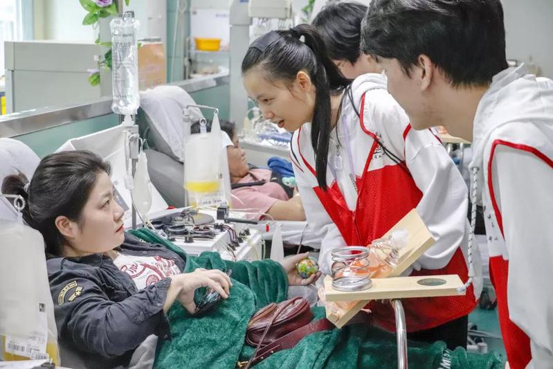 10月26日上午,受到福建省血液中心的邀請下,我校與福州外語外貿(mào)學(xué)院的小伙伴一起參加了本次機采血小板的宣傳活動。