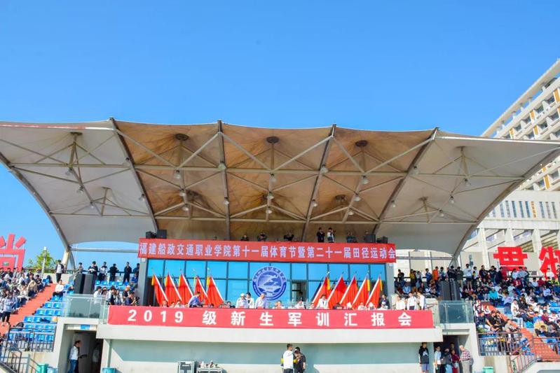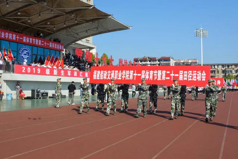 11月6日上午8時,福建船政交通職業(yè)學(xué)院2019級新生軍訓(xùn)總結(jié)匯報暨第二十一屆校園運動會開幕式在校田徑場隆重舉行。