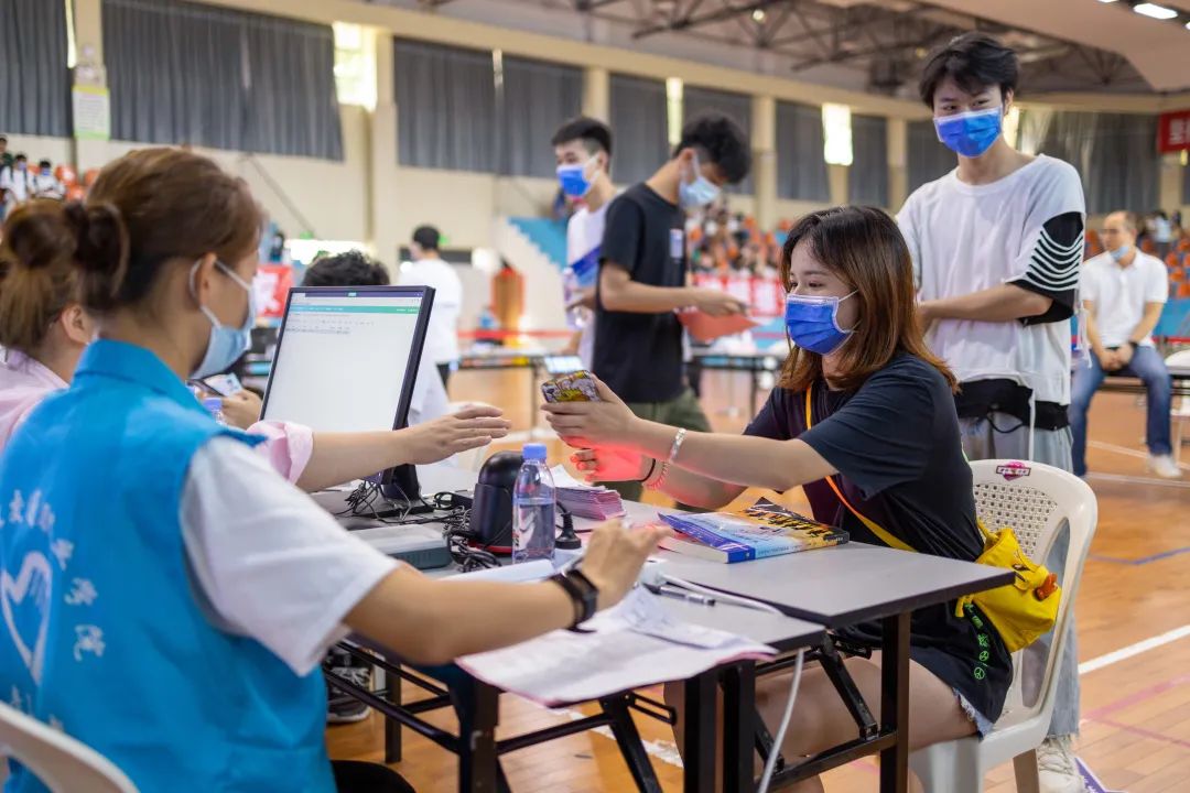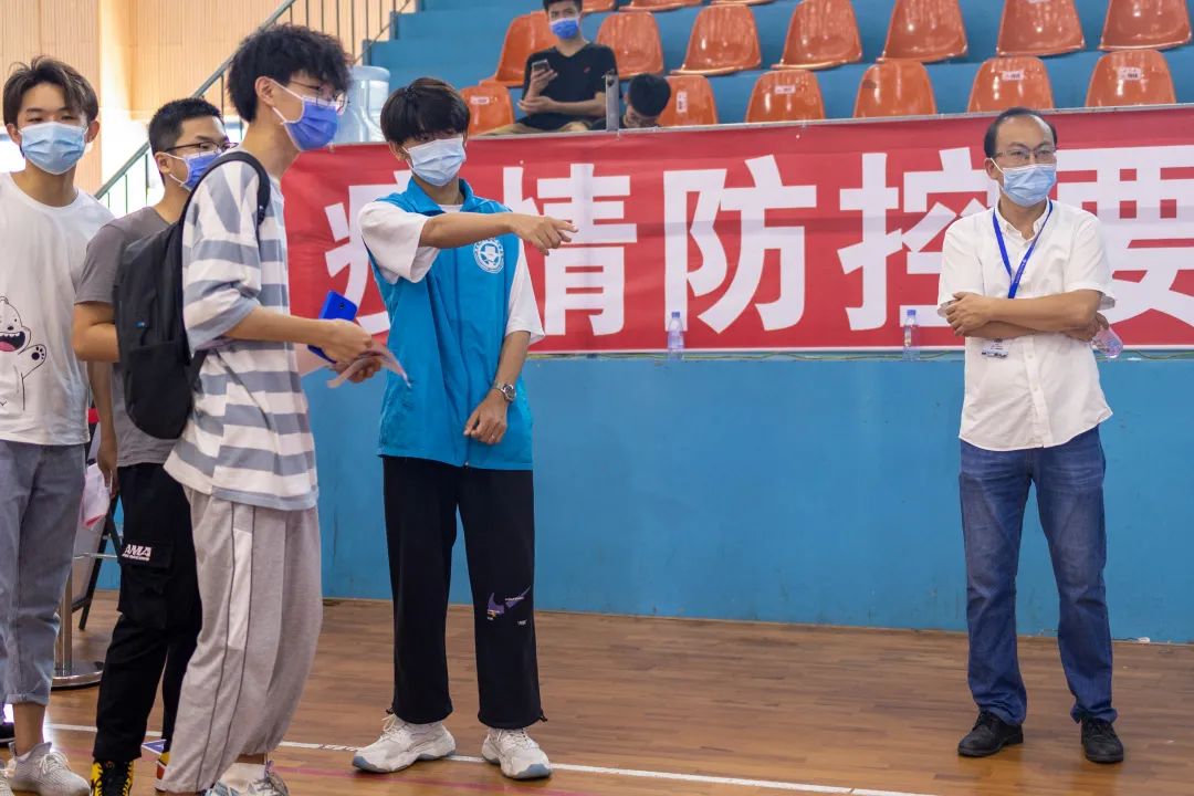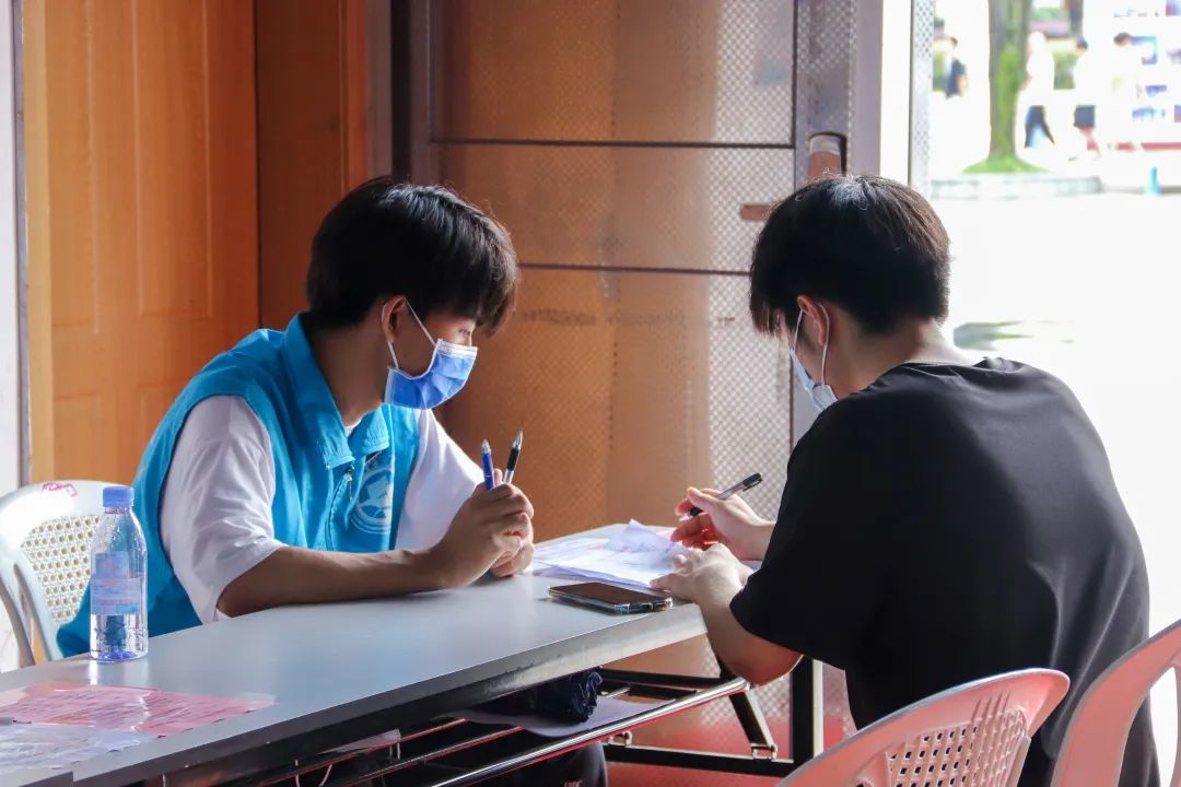 志愿者提醒師生出示接種預(yù)約登記信息,協(xié)助填寫(xiě)登記單、維護(hù)現(xiàn)場(chǎng)秩序、耐心解答師生們對(duì)于接種新冠疫苗流程的疑問(wèn),為疫苗接種工作把好第一道“關(guān)口”。
