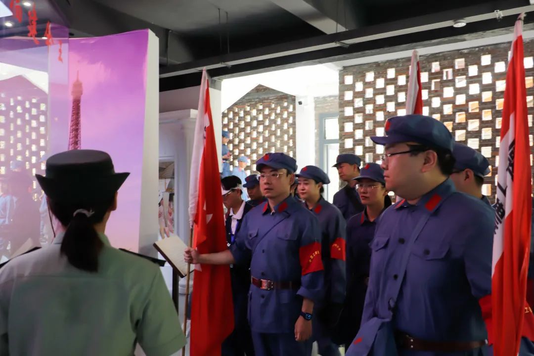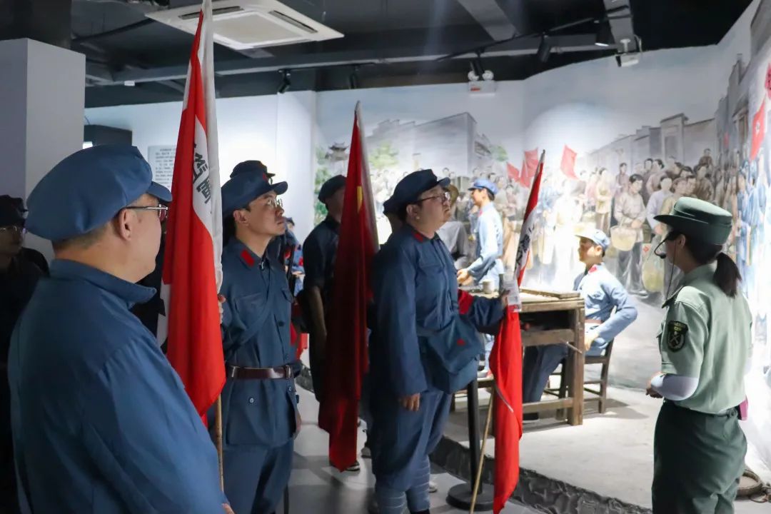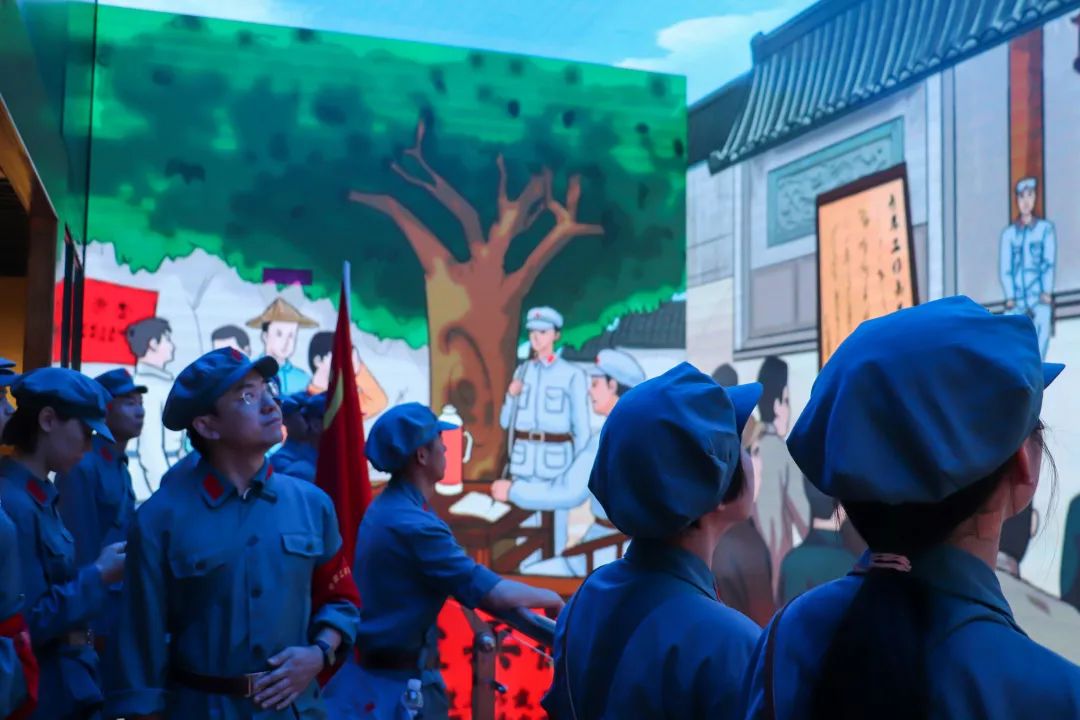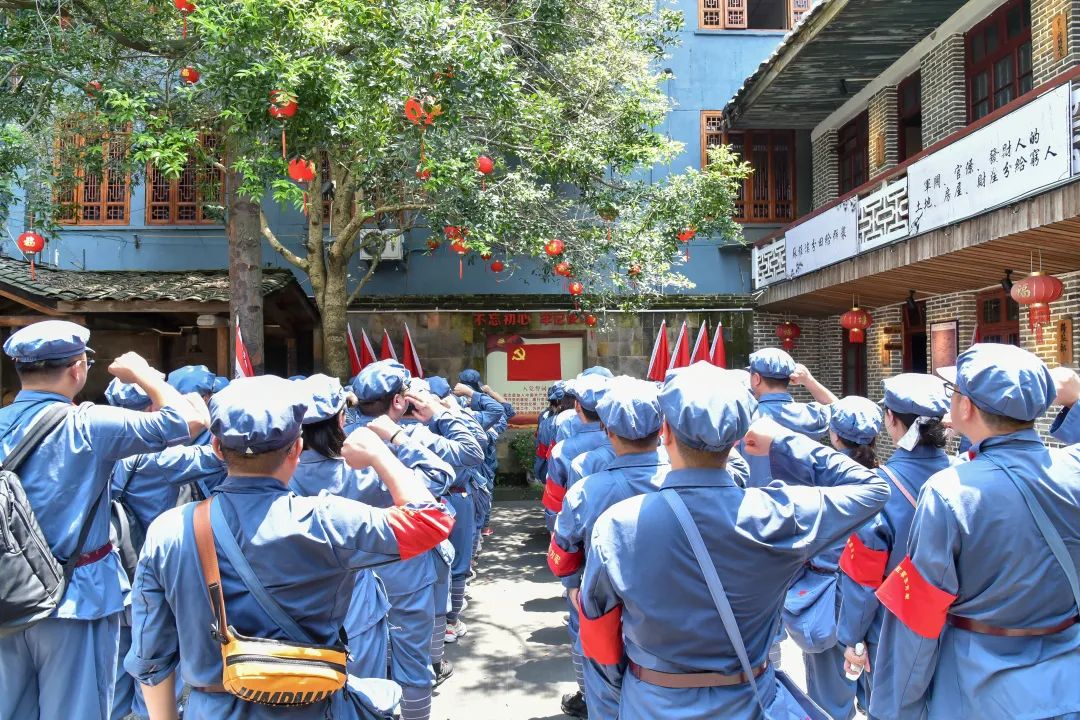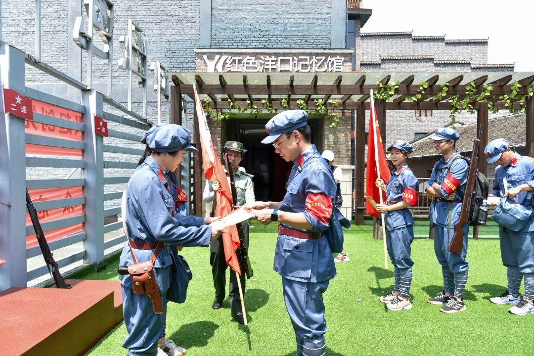 1933年8月25日,中國工農(nóng)紅軍東方軍第四師第十、十一、十二等三個(gè)團(tuán)從潛口和沙墩南渡富屯溪進(jìn)駐洋口。28日下午,召開會(huì)議通過“革命委員會(huì)”臨時(shí)綱要,選舉產(chǎn)生革命委員會(huì)主席戴子科、副主席陳子明,并成立了洋口蘇維埃政府。一幕幕熱血的往事恍如昨日,學(xué)院團(tuán)委副書記梁晶帶領(lǐng)培訓(xùn)班成員,緊隨先烈的足跡,在黨旗下莊嚴(yán)宣誓,“不忘初心、牢記使命”!