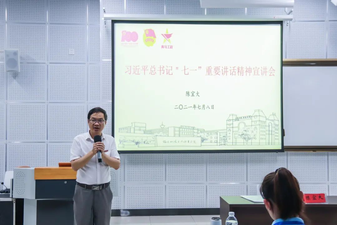 開班儀式后,學(xué)院黨委副書記陳宜大帶領(lǐng)各位團(tuán)干老師共同回顧習(xí)近平總書記七一宣講重要講話,深刻闡述了習(xí)近平總書記“七一”重要講話的重大意義,解讀了偉大建黨精神的深刻內(nèi)涵和時(shí)代價(jià)值,深化了對(duì)習(xí)近平總書記“七一”重要講話精神的理解和把握。