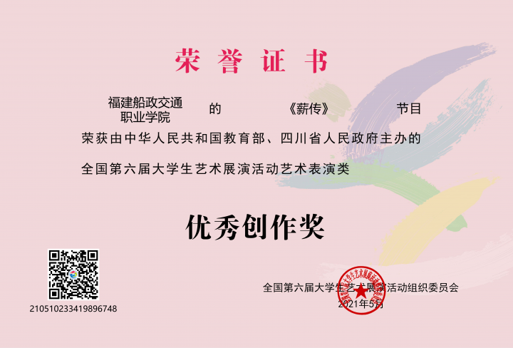 福建船政交通職業(yè)學院《薪傳》獲全國第六屆大學生藝術(shù)展演活動優(yōu)秀創(chuàng)作獎