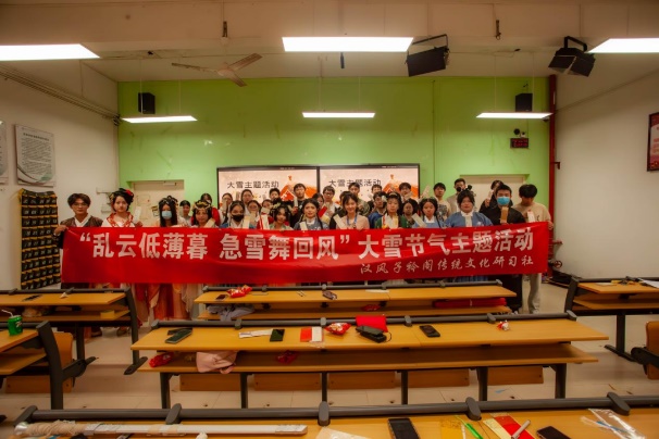 大雪,是二十四節(jié)氣中的第二十一個(gè)節(jié)氣,時(shí)間是公歷每年的12月7日或8日,民間有“小雪腌菜,大雪腌肉”的風(fēng)俗。在中國人的生活中,雪不僅代表了“瑞雪兆豐年”,還有“風(fēng)起,雪飛炎海變清涼”的風(fēng)雅,更有“北國風(fēng)光,千里冰封,萬里雪飄”的豪邁!為弘揚(yáng)節(jié)氣文化、漢服文化,社團(tuán)開展大雪節(jié)氣主題活動(dòng),同學(xué)們通過“雪之飛花令”、投壺和漢服走秀等形式,讓更多的青年學(xué)生充分感受傳統(tǒng)文化的魅力,增強(qiáng)學(xué)生們的文化自信。
