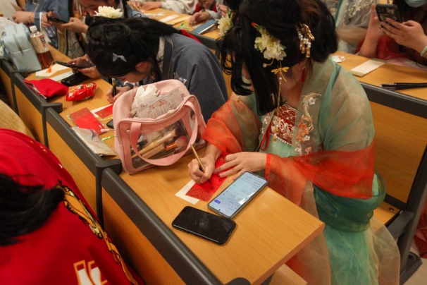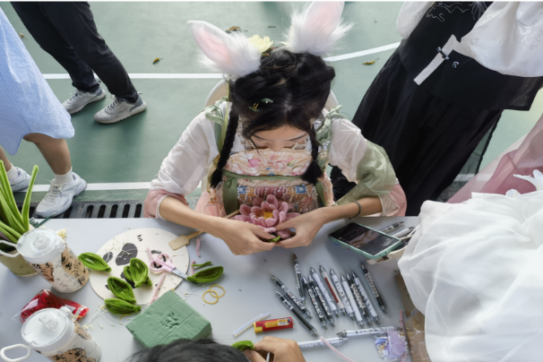 漢風(fēng)子衿閣的社員們保持高頻率的參與校園社團(tuán)巡禮節(jié)。巡禮節(jié)上成員身著各式漢服,衣袂翩翩,宛如畫中仙子;搭弓英姿,好似陣中勇士;儀貌堂堂,猶如翩翩君子,通過服飾和妝造再現(xiàn)千年前的風(fēng)華絕代,展現(xiàn)屬于我們自己的文化自信。巡禮節(jié)中的漢服體驗(yàn)活動(dòng)中,參與者試穿漢服,參與一系列文化體驗(yàn)活動(dòng),感受漢服的獨(dú)特的魅力。
