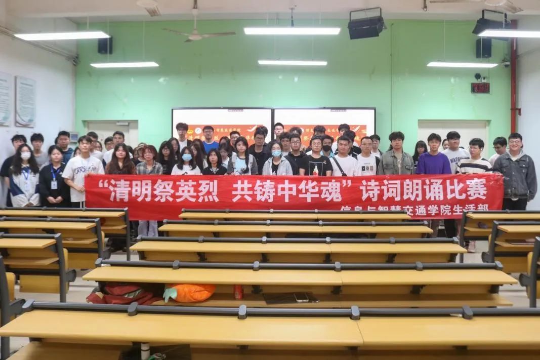 為宣揚(yáng)中華優(yōu)秀傳統(tǒng)節(jié)日文化,讓同學(xué)們更深入的了解清明節(jié)所承載的文化內(nèi)涵與民族情懷。信息與智慧交通學(xué)院于4月11日晚在福道園自強(qiáng)樓1-4開展“清明祭英烈,共鑄中華魂”詩(shī)詞朗誦比賽活動(dòng)。