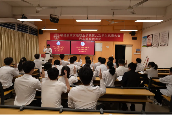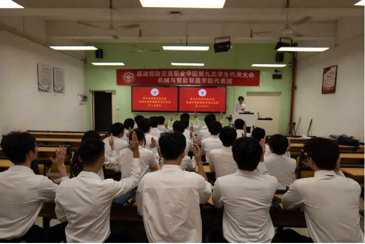 6月22日上午,福建船政交通職業(yè)學院第九次學生代表大會開幕式在福道園行政樓六樓學術(shù)報告廳舉行。校黨委委員、副校長陳艷紅出席大會開幕式并講話,福建省學聯(lián)駐會執(zhí)行主席林潤杰同學到會致辭,校黨委組織部、宣傳統(tǒng)戰(zhàn)部、學生工作部、團委,教務處、安全保衛(wèi)處等相關(guān)職能部門,各二級學院分團委負責人,第九次學生代表大會代表參加開幕式。