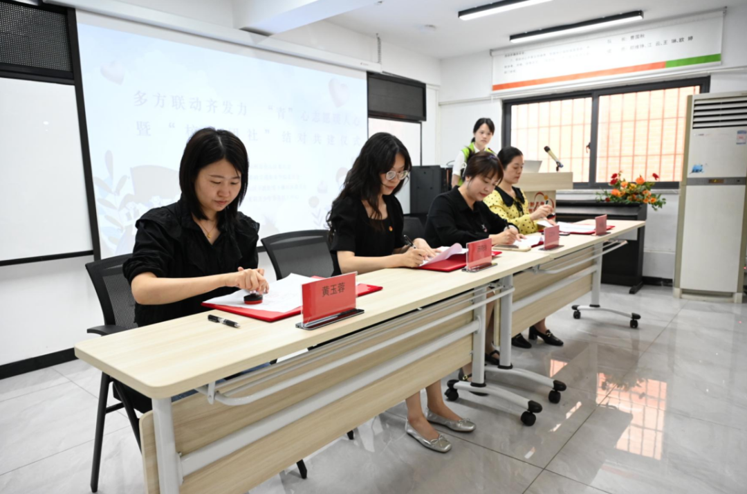 隨后,學(xué)院團(tuán)委與共青團(tuán)福州市倉(cāng)山區(qū)委員會(huì)、下渡街道下藤社區(qū)、倉(cāng)山區(qū)小茉莉青少年事務(wù)社工中心共同簽署了“校地團(tuán)社”共建協(xié)議。