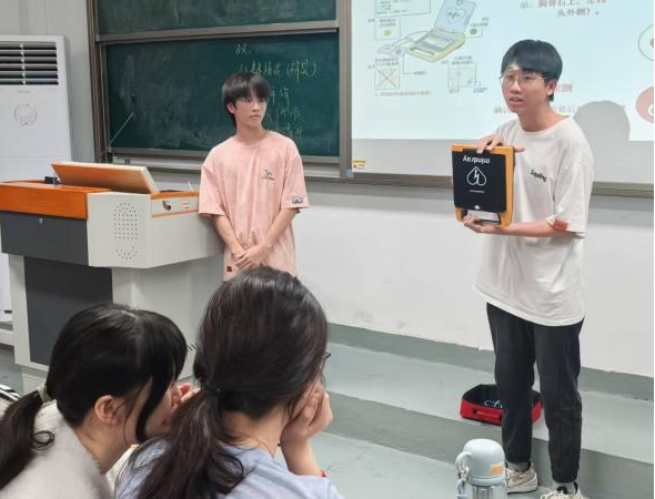 活動現(xiàn)場,工作人員耐心地展示AED的部件和使用方法,同學(xué)們認(rèn)真傾聽工作人員的講解。通過實踐這種極具感染力的方式,不僅讓急救知識深入人心,更加強(qiáng)了同學(xué)對于校園安全的防范意識。
