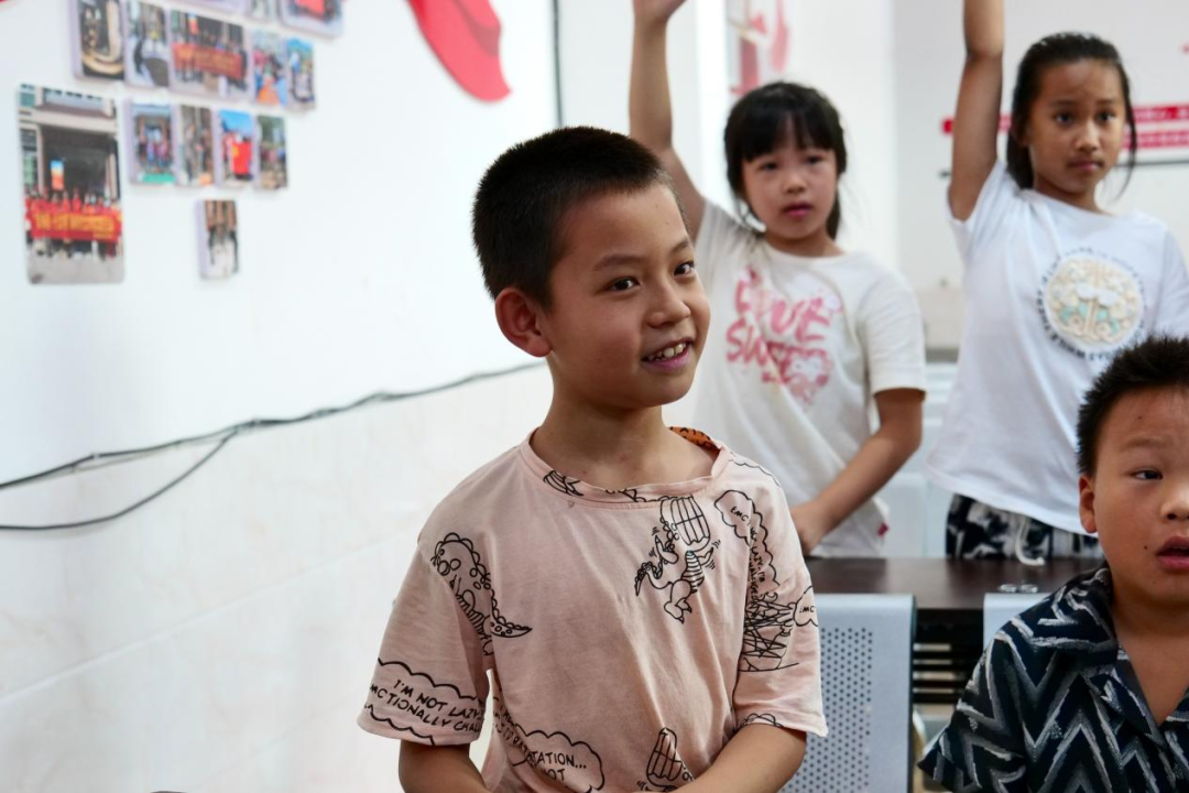 圖為實(shí)踐團(tuán)在三溪鄉(xiāng)溪源村對(duì)小朋友進(jìn)行調(diào)查問卷
