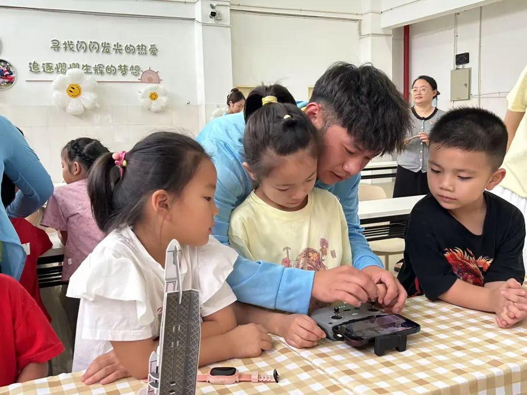 鄉(xiāng)村振興,教育筑基。“藍(lán)天禮儀志愿服務(wù)隊(duì)”深知,航空夢的種子,要在童年土壤里早早播撒。隊(duì)員們提前籌備,將已學(xué)到的航空知識整理為童趣故事;精心挑選安全且可拆解的航空模型拼圖,反復(fù)調(diào)試無人機(jī)飛行方案,只為給孩子們最生動(dòng)的航空課堂。