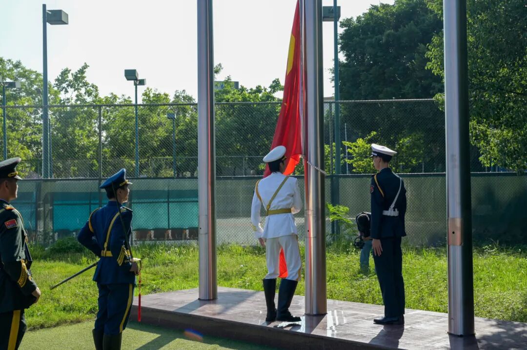 當激昂的國歌聲響徹田徑場,五星紅旗迎著朝陽緩緩舒展、升至頂端,這場承載期待的新生開學典禮,就此莊重啟幕。