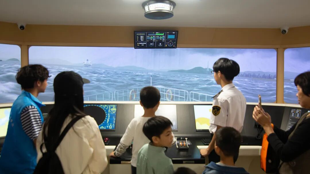 在航海實訓(xùn)基地,在航海學(xué)院教師的專業(yè)指導(dǎo)下,家長與孩子一同借助航海模擬器實操,系統(tǒng)了解不同船型操縱特性、船舶避碰規(guī)則、航線規(guī)劃設(shè)計及航海儀器應(yīng)用等核心知識;攜手登臨退役艦艇,沉浸式追溯人民海軍艦艇的發(fā)展歷程;共同聆聽福船文化專題講解,走進海洋航行器創(chuàng)研工坊,深入探尋中國古代船舶技術(shù)精粹與古福船文化內(nèi)涵。