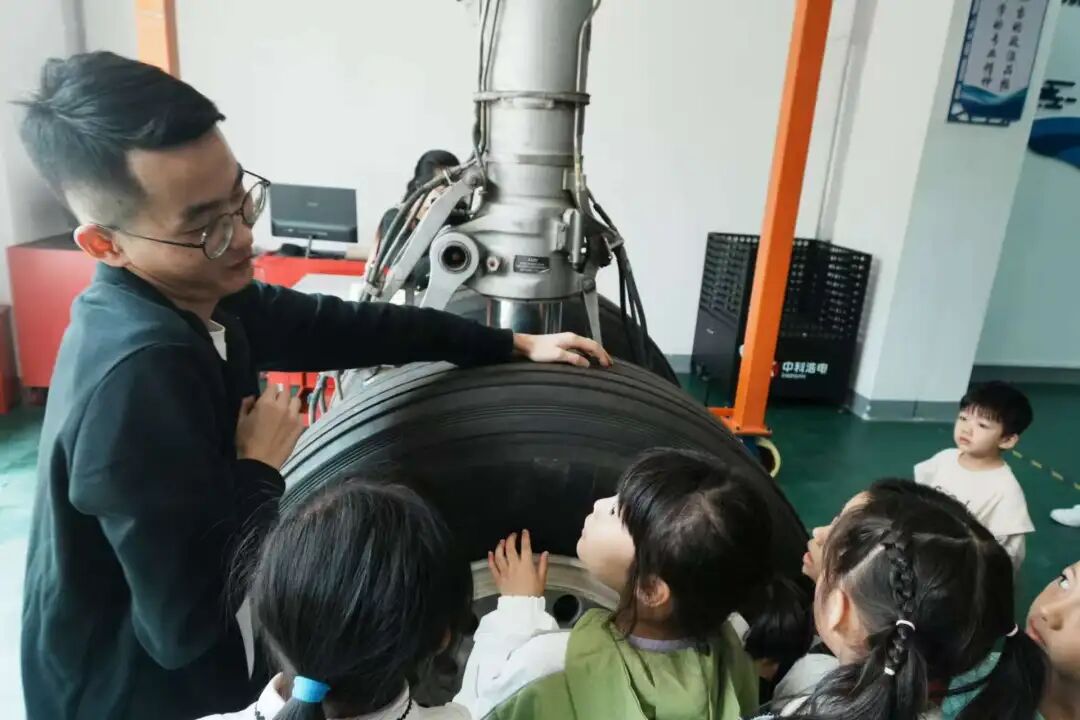 航空實訓(xùn)基地內(nèi),通用航空學(xué)院教師現(xiàn)場講解,家長和孩子認真聆聽,初步明晰飛機維修崗位的職業(yè)屬性與技術(shù)標準。在老師的細致指導(dǎo)下,家長與孩子共同參與維修實踐操作,完成相關(guān)工序,直觀體驗飛機維修工作的基本流程。