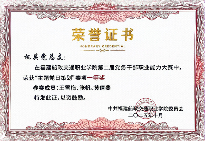 本次大賽設(shè)有黨務(wù)知識(shí)測試、主題黨日活動(dòng)策劃、談心談話、微黨課四個(gè)賽項(xiàng)。主要考察黨員高校黨務(wù)工作知識(shí)和實(shí)操,重點(diǎn)考察黨務(wù)干部綜合運(yùn)用理論分析、研判、解決黨務(wù)工作具體問題的能力。比賽中,機(jī)關(guān)黨總支代表隊(duì)成員分工協(xié)作、各展所長。在黨務(wù)知識(shí)測試環(huán)節(jié)沉著應(yīng)答,展現(xiàn)了深厚的理論素養(yǎng);在主題黨日活動(dòng)策劃環(huán)節(jié),以新穎的思路、詳實(shí)的方案和可落地的執(zhí)行路徑贏得評(píng)委一致好評(píng),成功榮獲該賽項(xiàng)一等獎(jiǎng);談心談話環(huán)節(jié)中,隊(duì)員們精準(zhǔn)把握溝通技巧,展現(xiàn)了自己的引導(dǎo)能力和解決問題能力;在微黨課環(huán)節(jié),黃倩斐同志以《從船政學(xué)堂到職教強(qiáng)校:一場跨越百年的“育人報(bào)國”接力》為題,結(jié)合歷史脈絡(luò)與職教實(shí)踐,以生動(dòng)案例和深刻感悟傳遞初心使命,最終榮獲該賽項(xiàng)三等獎(jiǎng)。